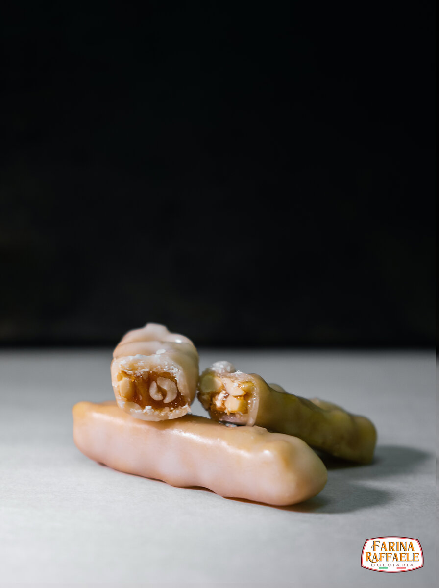 I mostaccioli calabresi sono un antico dolce della tradizione natalizia del Sud Italia, dove il miele millefiori incontra le spezie mediterranee. Preparati con farina, miele puro e un mix segreto di spezie tramandato da generazioni, presentano una consistenza unica: morbidi all'interno e leggermente croccanti fuori. La glassa al cioccolato fondente aggiunge un tocco di eleganza a questo dolce rustico e genuino.