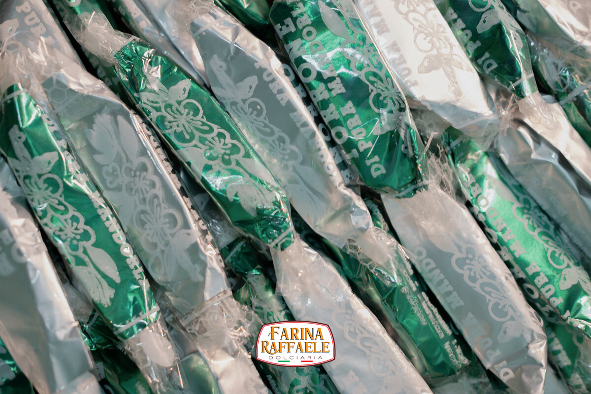 Il torrone al pistacchio è una celebrazione del verde smeraldo di Bronte. Pistacchi siciliani DOP interi, tostati con cura nel nostro laboratorio, incontrano la dolcezza del miele e la croccantezza dell'ostia. Ogni morso rivela l'inconfondibile sapore del pistacchio di Bronte, intenso e leggermente dolce, in un torrone dalla consistenza perfetta. Un gioiello della pasticceria siciliana.